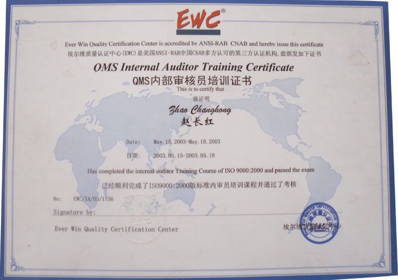 QMS內部審核員培訓證書